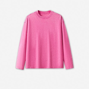 Byval Cost Effective Wholesale Custom Women's Heavyweight Washed 100%cotton Long Sleeve O Neck t Shirts Vintage Regular Tops
