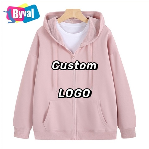 Byval Direct Wholesale Custom Your Brand logo Women's Polyester/cotton Terry Full Zip up Hoodie High Quality Winter Sweatshirt