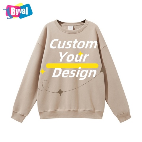 Byval Oem Wholesale Custom Embroidery Printing Men's 100%cotton Fleece Crew Neck Sweatshirts Long Sleeve Winter Casual Wear