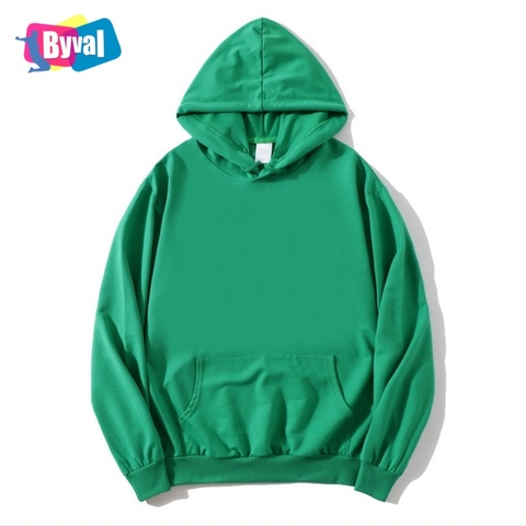 Byval Wholesale Custom Embroidery Printing Pure Color 100%cotton Fleece Men's Pullover Hoodie Regular Fit Casual Sweatshirts