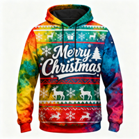 Byval Wholesale Hot Sale Knitted 100%polyester Sublimation Printed Men's Christmas Pullover Hoodie Lightweight Event Outwear