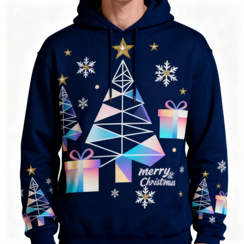 Byval Wholesale Custom Sublimation Printed Christmas Design Knitted 100%polyester Men's Pullover Hoodie Event Apparel