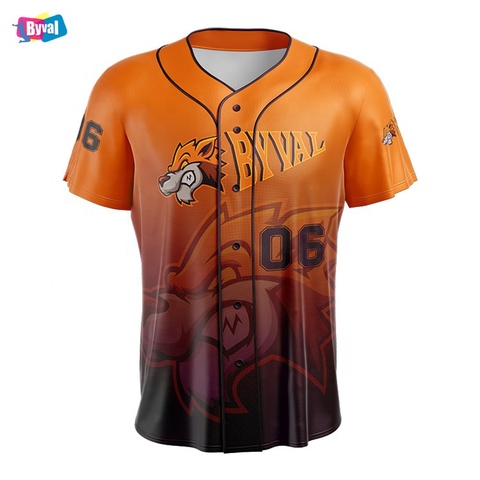 Byval Direct Wholesale Custom 100%poly Men Baseball Uniform Button Baseball Jersey Sublimated Team Quick Drying Plus Size